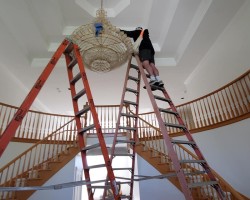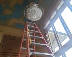 Chandelier cleaning is definitely one of our specialties. We have cleaned hundreds! Our maintenance cleaning includes a dusting of all metal components: frame, chain, sockets, mount and then a wet wipe or spray and wipe of all glass and/or crystal components. We also wash the bulbs, or can swap them out for new bulbs you supply or we can supply upon request. Specialty cleanings for newer fixtures to be assessed on site. All stand alone cleanings start at $225 but can be less if you combine with a window cleaning.